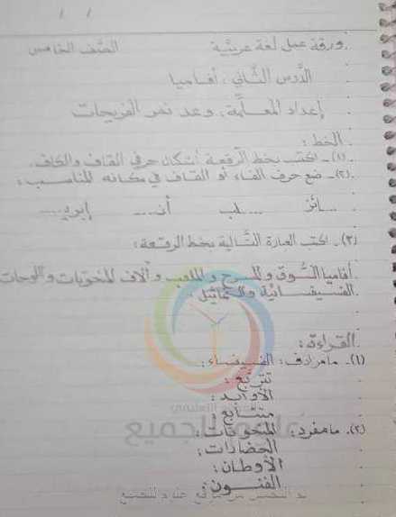 الصف الخامس اللغة العربية تحضير درس حرفي ع غ