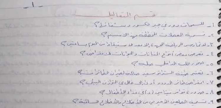 أهم الأسئلة والفقرات الواردة لمنهاج الصف التاسع مادة العلوم العامة فيزياء علوم كيمياء