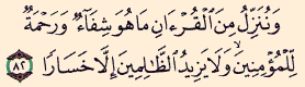 وَنُنَزِّلُ مِنَ الْقُرْآنِ مَا هُوَ شِفَاءٌ وَرَحْمَةٌ لِلْمُؤْمِنِينَ ۙ وَلَا يَزِيدُ الظَّالِمِينَ إِلَّا خَسَارًا