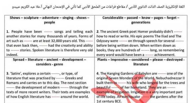 البكالوريا الأدبي اللغة الإنكليزية مقاطع فراغات من الملحق الأدبي